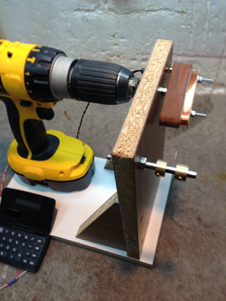It is powered by my variable speed drill. The bobbin holder runs in 2 deep-groove bearings to ensure spinning accuracy. There is a magnet in one end of the holder which trips a reed switch once every rev. The reed switch is wired into the '=' button on the circuit board of an old calculator & so counts the total number of revolutions, 4750 revs for this particular pick-up.